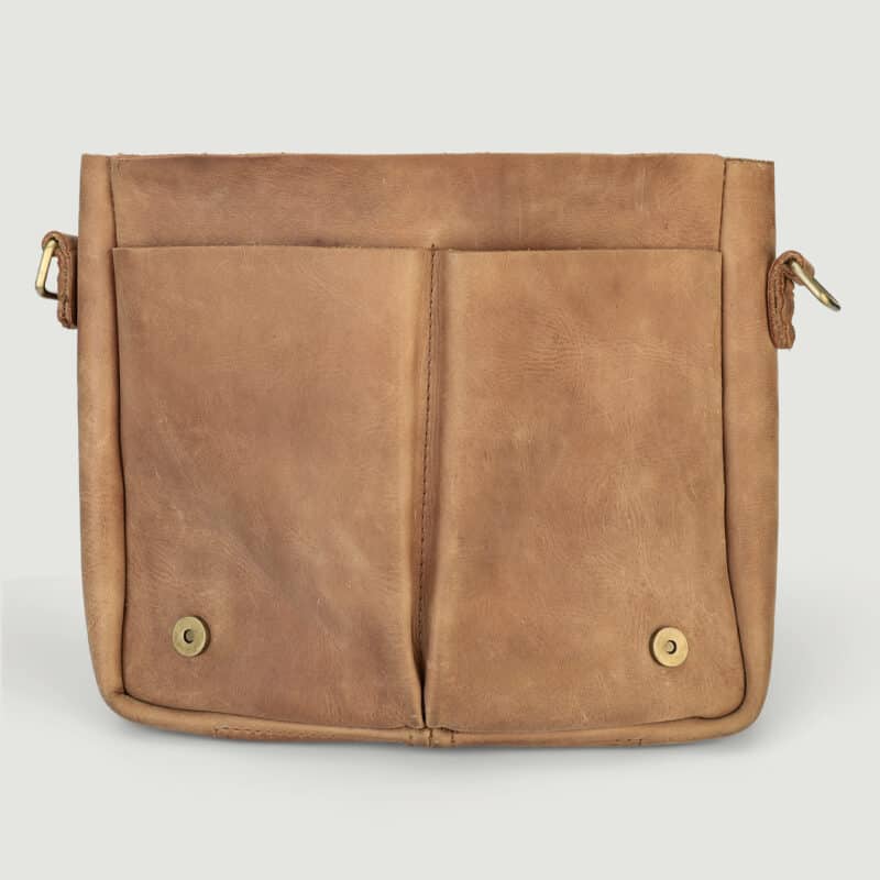 - خامة الجلد الطبيعى تكسبها طابع فخم يزداد جمالًا مع الاستخدام، وتوفر حماية كاملة لجهاز اللابتوب والأوراق بفضل التصميم الداخلي المنظم والجيب الأمامي العملي.