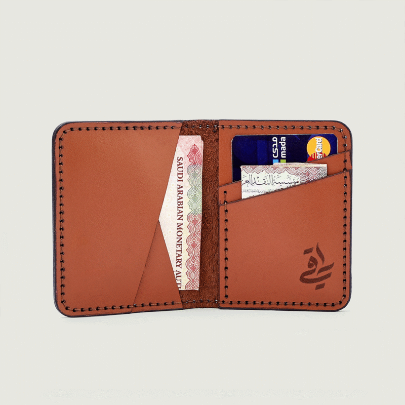 صُنعت يدوياً من الجلد الطبيعي الفاخر بلون البني الفاتح (الجملي)، وتتميز بتصميمها النحيف الذي يتسع لبطاقاتك الأساسية دون أن يشغل مساحة في جيبك.