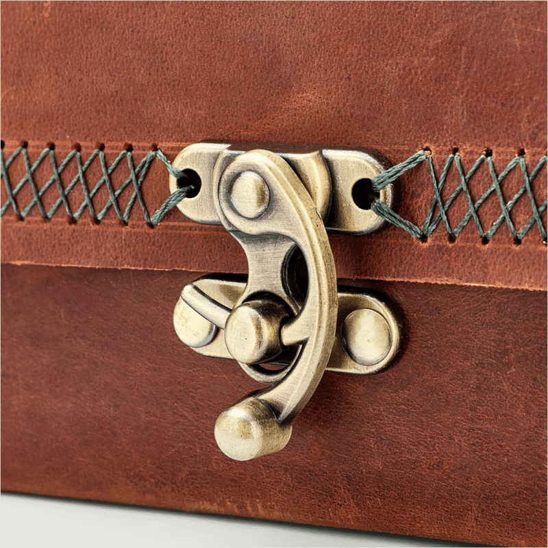 - تصميم أنيق مزودة بقفل معدني عتيق وخياطة يدوية بارزة تضفي عليها لمسة فريدة.